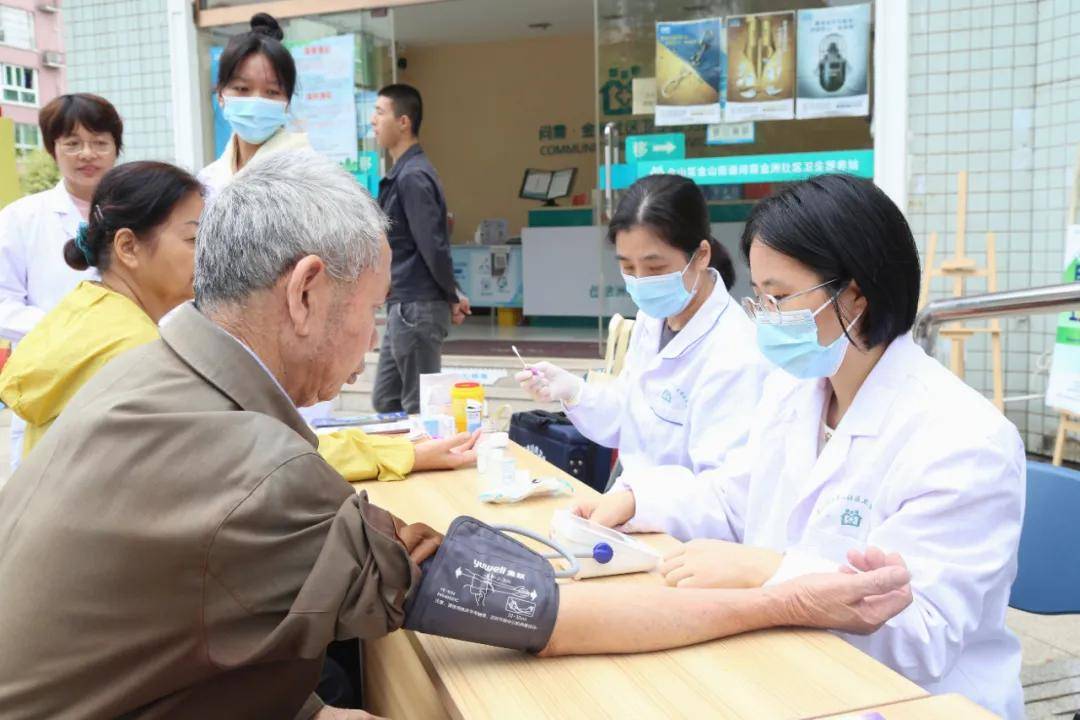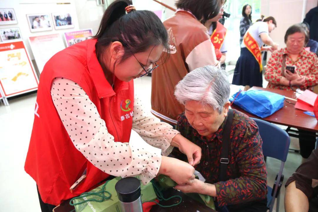 与此同时室外小广场上,多部门服务摊位一字排开,热闹非凡。金山街道第二社区卫生服务站的医护人员早早搭起义诊摊位,为居民提供血压测量、血糖检测等基础检查服务,耐心解答关于慢性病管理、日常用药的疑问;仓山区医保局的工作人员忙着解读医保报销政策、异地就医流程等热点问题,帮助老人清晰了解医保权益;仓山区民政局则围绕老年群体需求,现场普及居家养老服务补贴、社区养老驿站功能、高龄津贴申请等政策,工作人员手把手指导有需要的老人填写申请材料,细致回应 “如何申请居家上门护理”“养老驿站能提供哪些服务” 等疑问,切实解决老人在养老服务方面的困惑,各服务点前都围满了咨询的居民。