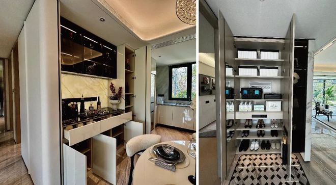 ⑤大手笔的在厨房设计了油烟机自带制冷空调,相比只能吹风的凉霸而言,这样的设计更美观也更舒适,用实力演绎千万级别的高端住宅体验!